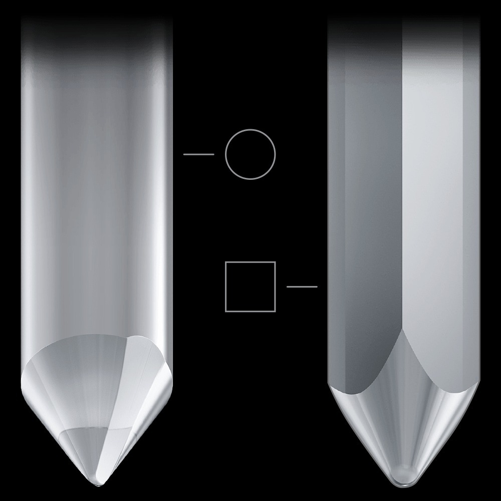 Round: Round shank can be more difficult to align when it is affixed to the cantilever. Proper alignment is needed in order to position the stylus tip precisely in the record groove.
