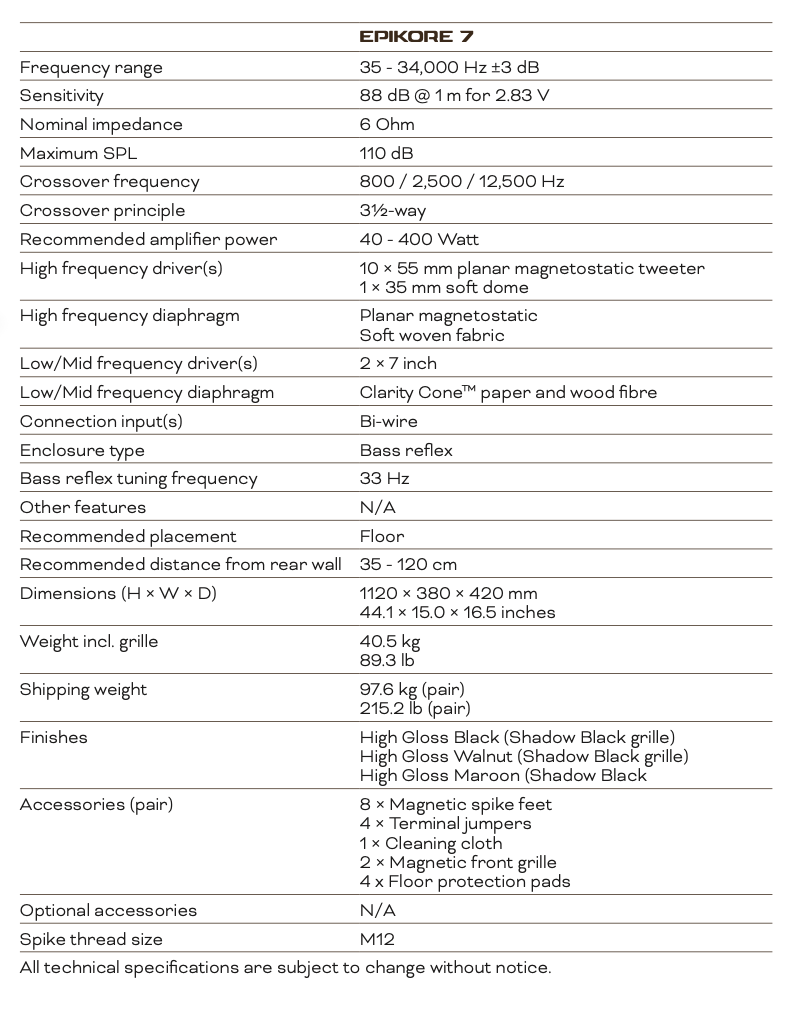 The newly designed 7-inch EPIKORE 7 bass/midrange drivers are equipped with an exceptionally large and powerful magnet system featuring our patented SMC Gen-2 technology. Our signature paper & wood-fibre cone has also been enhanced with low-loss Clarity Cone technology to further dampen unwanted resonances. The result is an astonishing low-loss, low-distortion reproduction that brings you so close to the original recording, you can almost reach out and touch it.