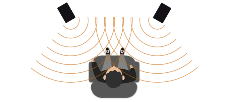 At a concert, in conversation, or at home with a stereo speaker system, we hear sound coming from the front. When sound comes from the side, we instinctively turn our head so that we can hear the sound coming from the front again. This corresponds to our natural hearing behaviour and allows us to perceive sound accurately and without distortion.