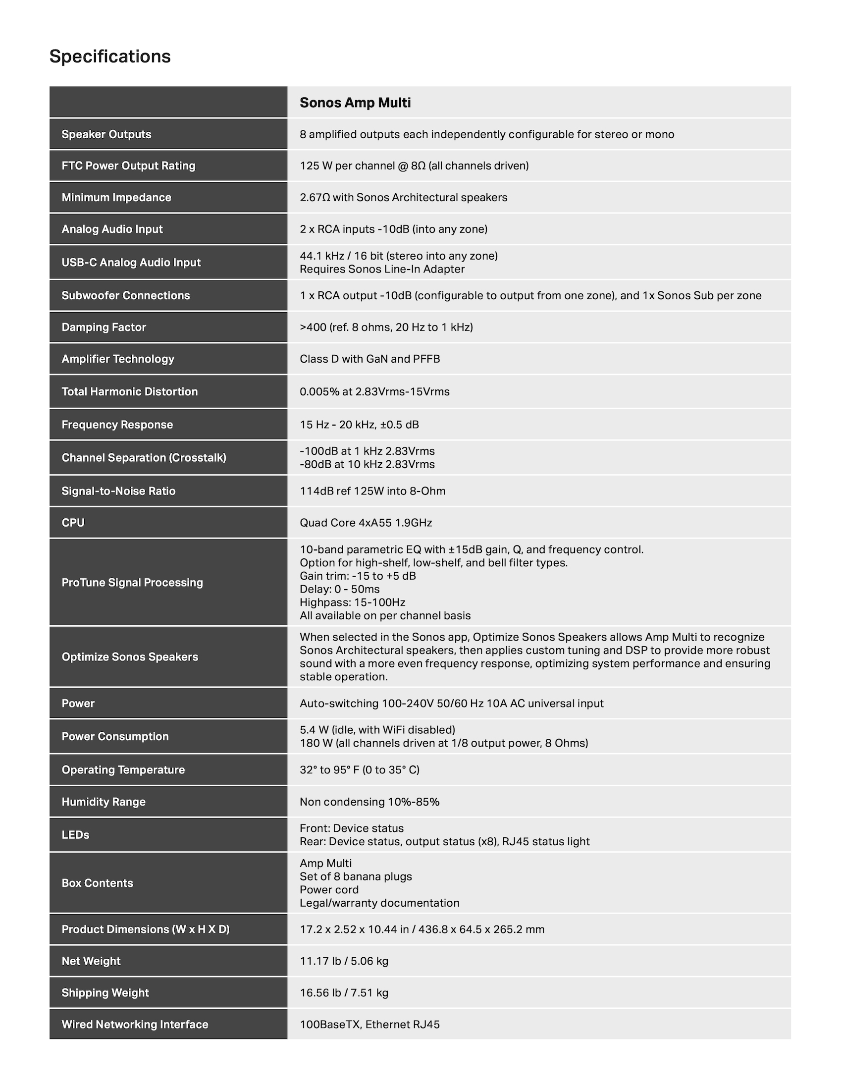 GaN technology helps Amp Multi consume less than 5.5W at idle to reduce heat and improve reliability, while software enhancements further reduce energy use during playback and standby.