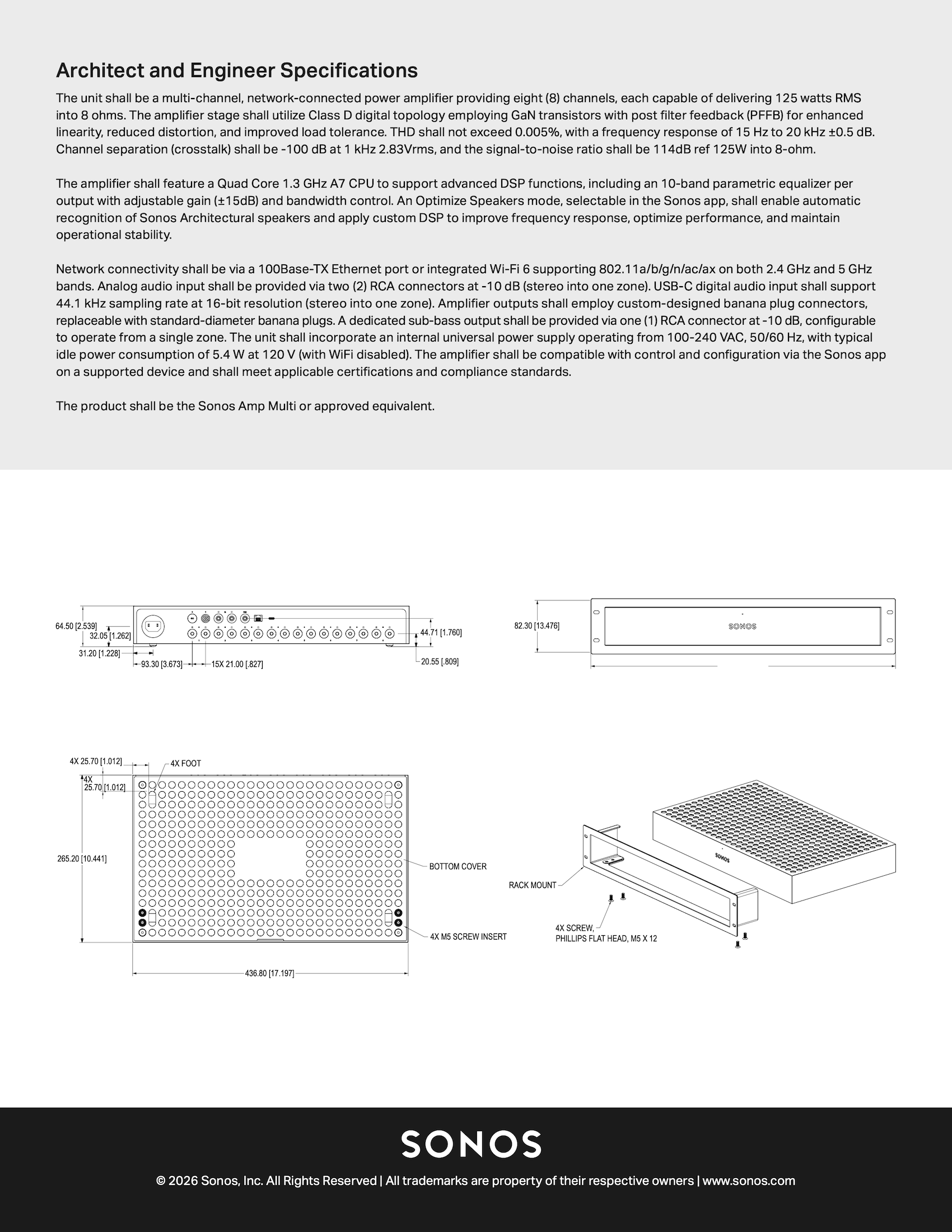Advanced overdrive protection safeguards the system from overheating or failure, ensuring reliable performance even when powering up to three passive Sonos speakers per channel.
